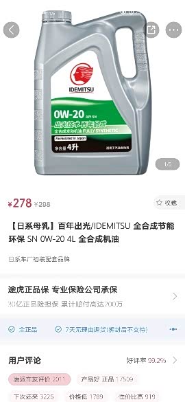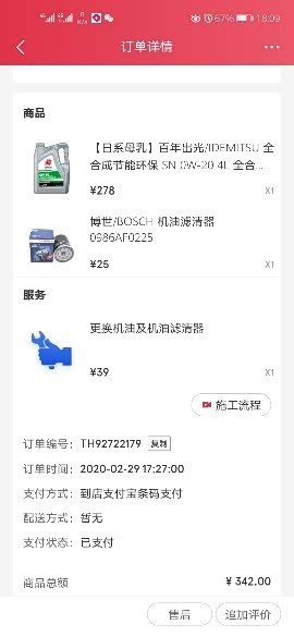直接在途虎养车保养的,自己选的机油,看机油名字应该挺适合的,换了一个机油滤芯,空调滤芯和空气滤芯师傅直接用气吹了一下就ok,还给我免费加了冷却液和玻璃水,真的服务挺好的