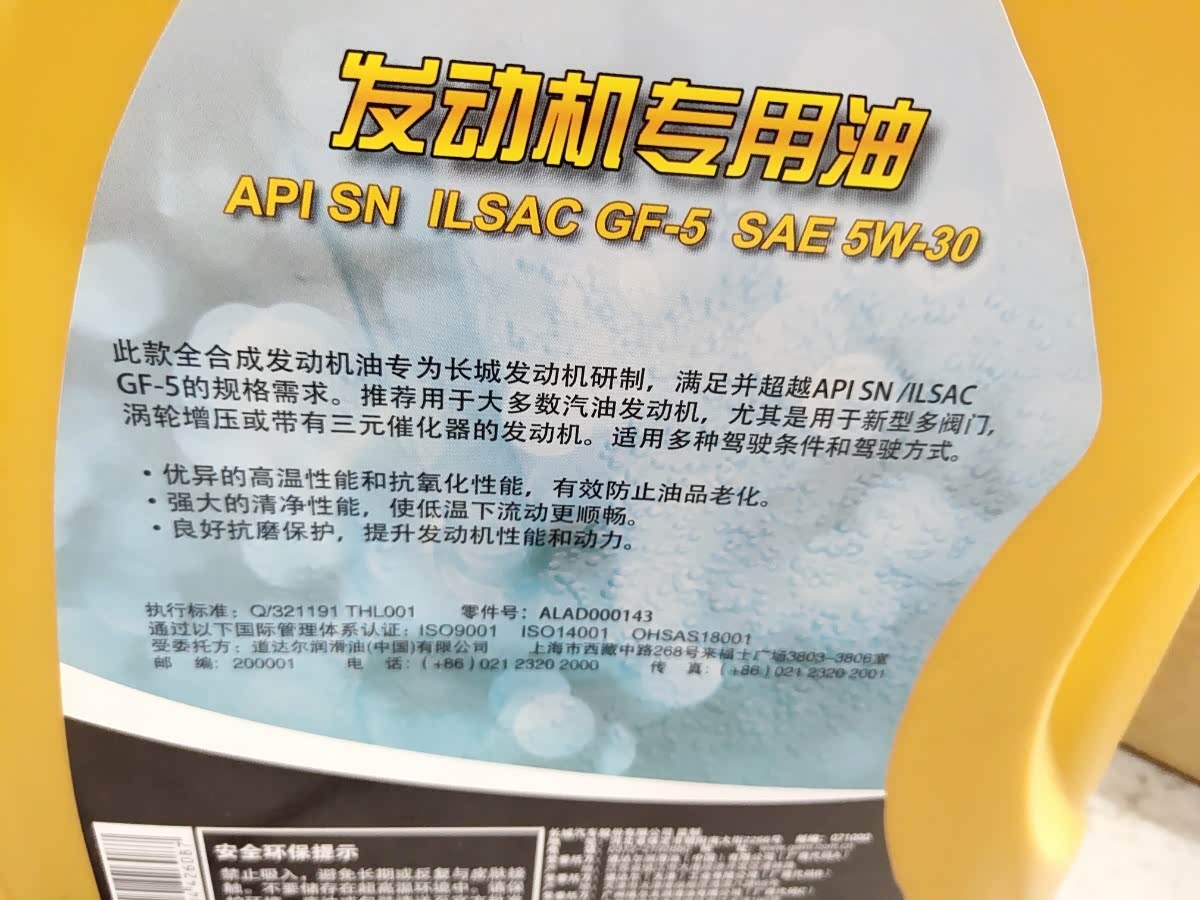 道达尔5W-30全合成机油5升329元,组合垫圈6元,机油格48元,材料费用在正常范围内,工时费110元也可以,共计493元很不错了。还有加玻璃水、加防冻液、清洗发动机舱、洗车都是免费,接待小姐服务很好,维修师傅技术不错,