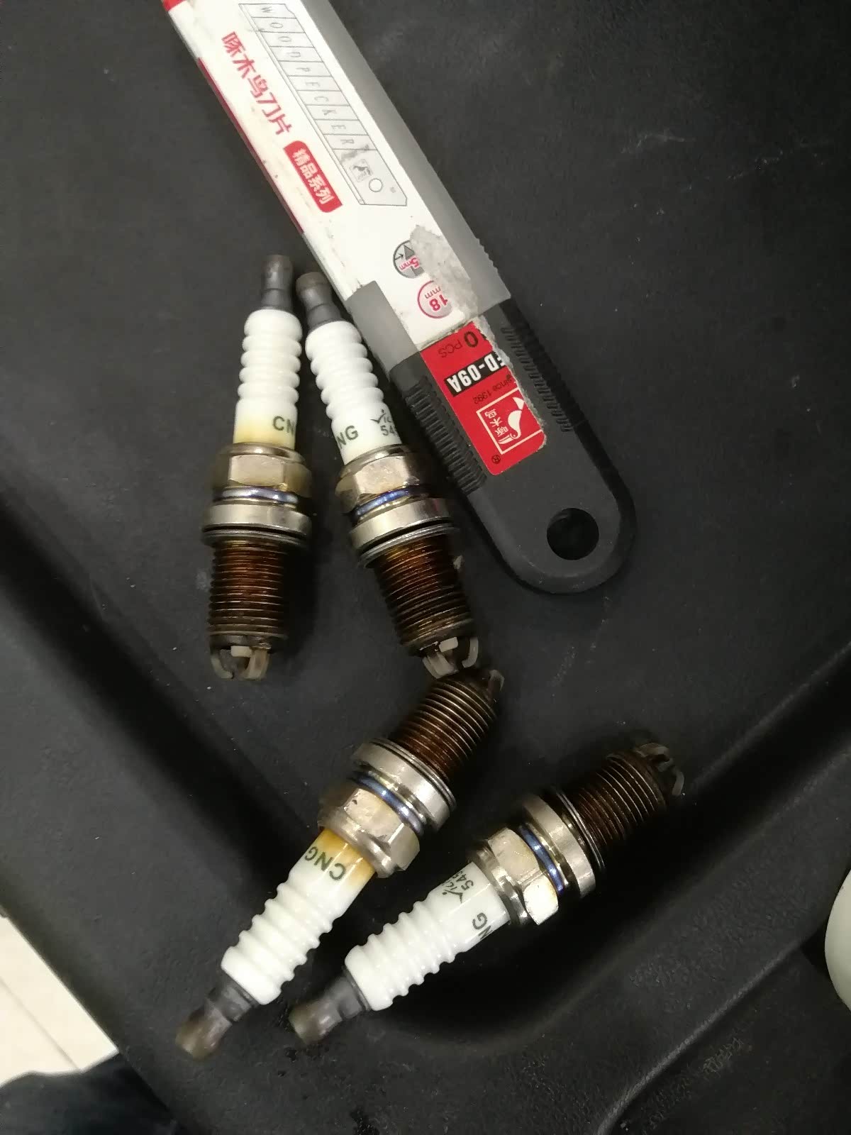 NGK铱金4272火花塞四只,铃木原厂75W80手动变速箱油,标榜化油器清洗剂。因为去年冬天冷车一档不好挂,而且离合器行程变短,去年换了两次刹车油都没有效果,判断不是离合器的原因,换了稀一点的变速箱油试试,火花塞前车主应该没人坑了换的烧天然气机子的火花塞,也是拆下来才发现。看了下节气门不脏,师傅用化清剂喷在抹布上擦的。这家店老板干活很细致,工时费一共收我150元,偏贵了一点,但是活干的好也没啥。