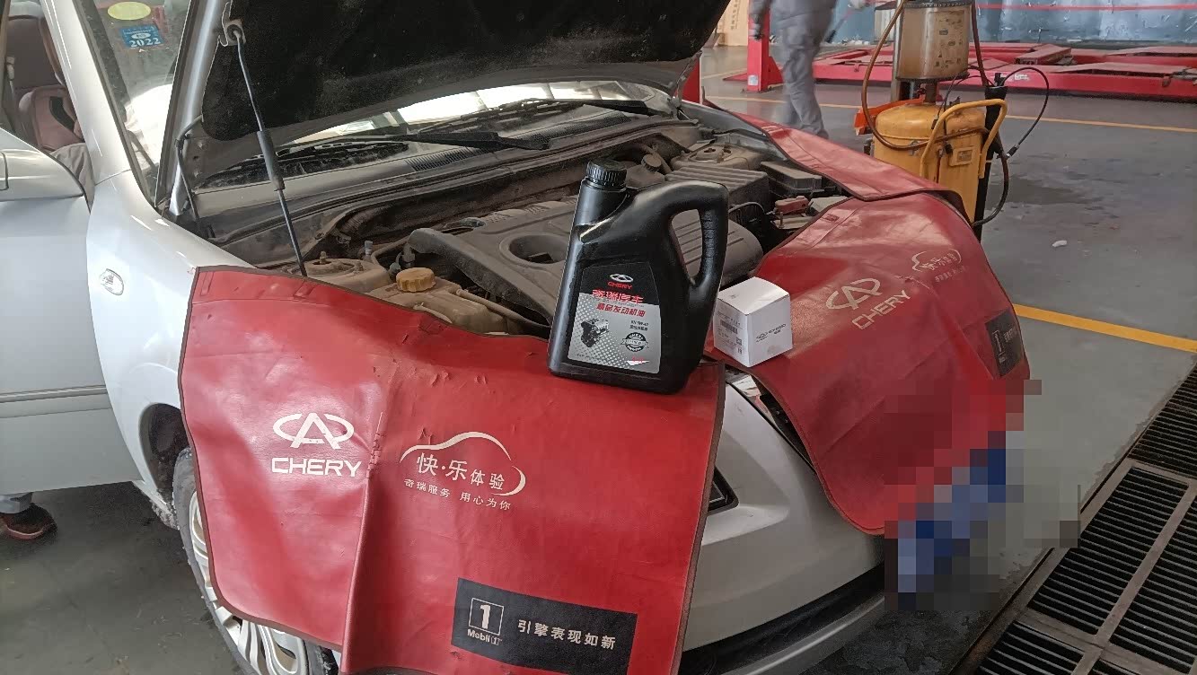 奇瑞旗云3,车主到店内做常规性的保养检查,主要更换发动机机油和机油滤清器,保养完之后,发动车辆再检查是否渗油,以及放油螺丝,机油滤芯,底板是否上紧,结束后洗车。