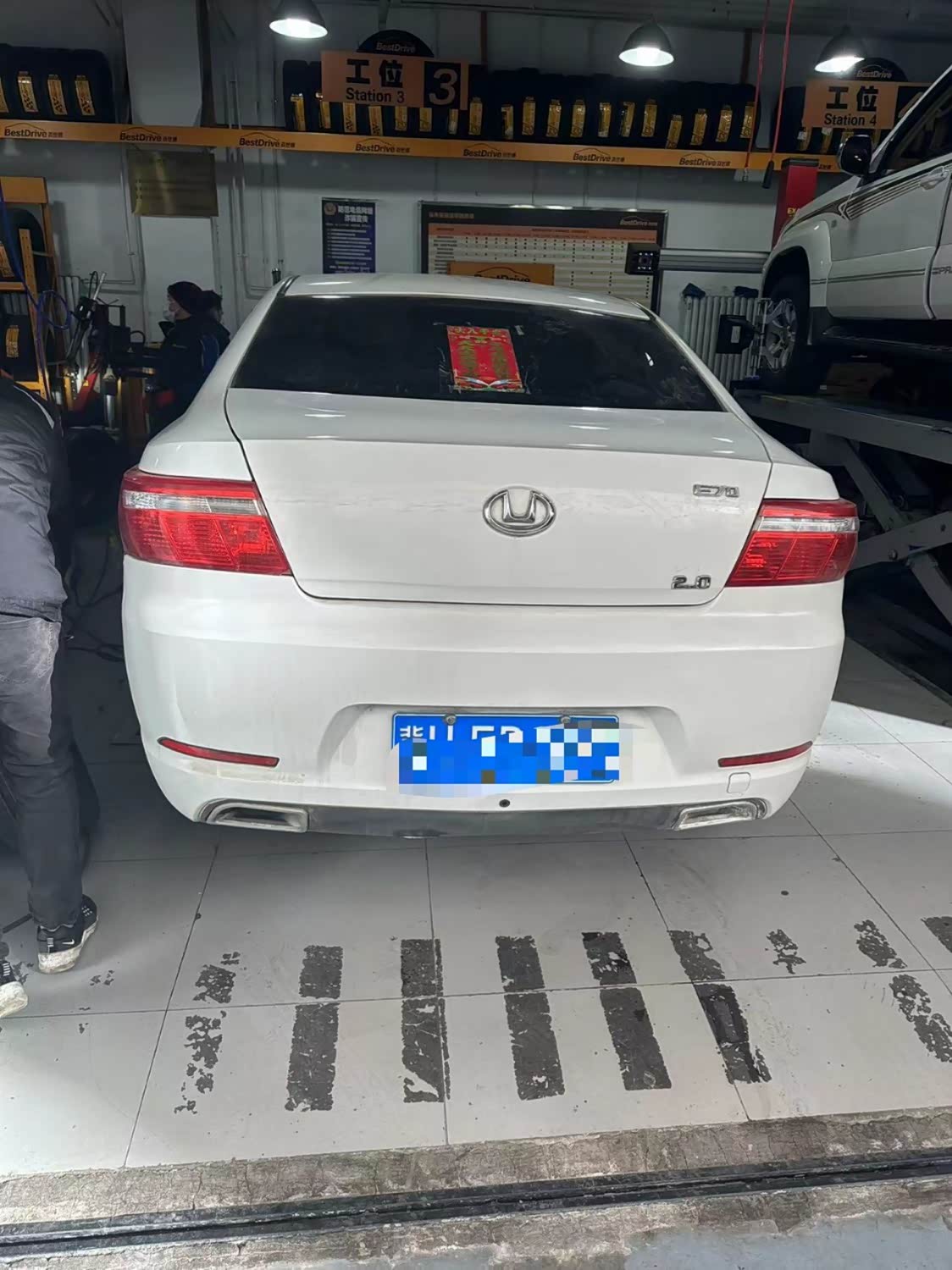 车型华泰路盛E70,公里数41131,四轮动平衡,四轮动平衡是对四个车轮的动平衡测试,动平衡测试时,需要拆下四个轮子,然后放在专用机器上旋转。