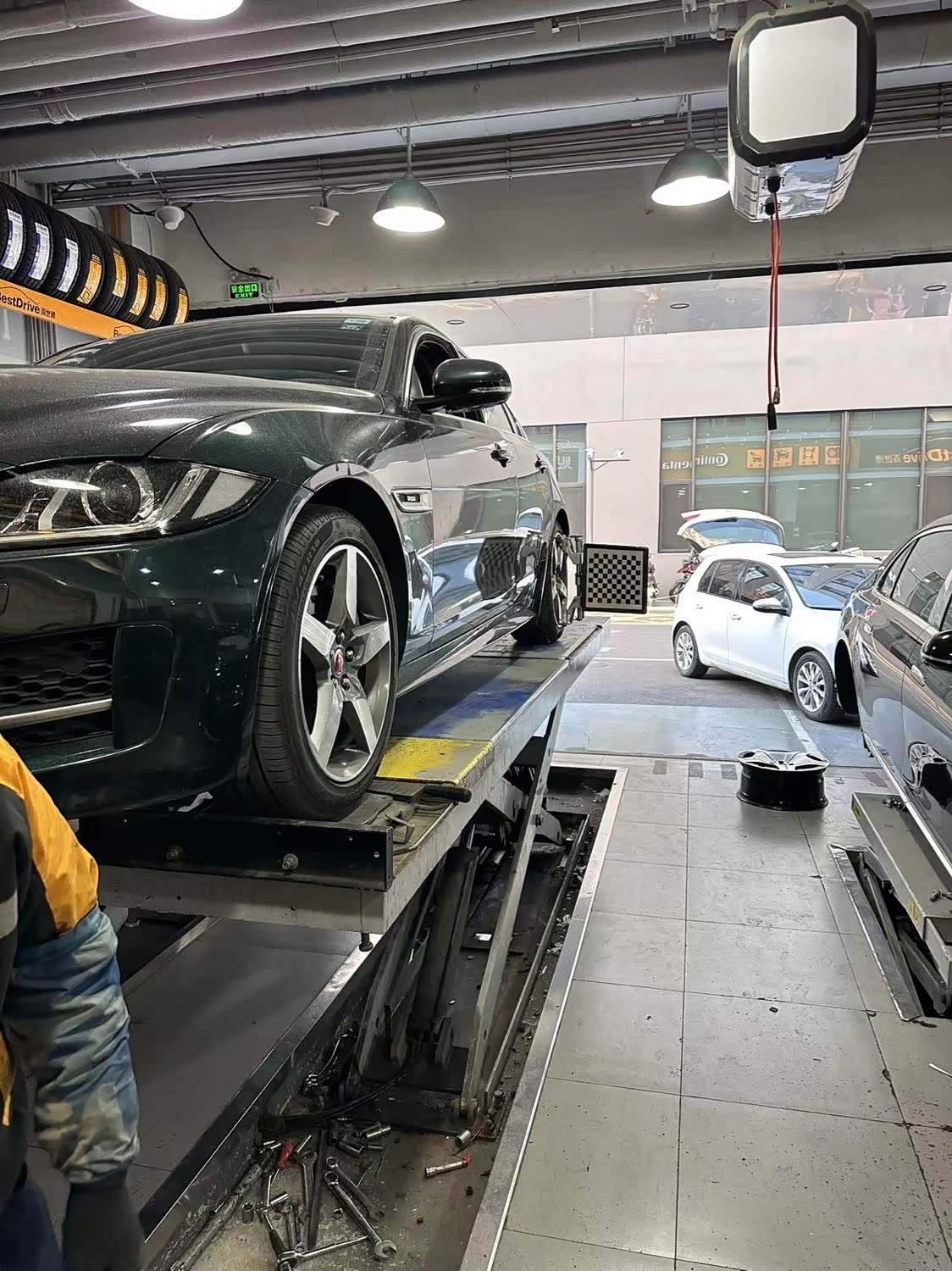 车型捷豹XE,公里数85208,今天车主来店里给车子做四轮定位,四轮定位是通过调校轮胎与转向、悬挂各部件的几何角度,保证轮胎与地面的紧密结合,有的车主会选择定期给车子做这个项目。