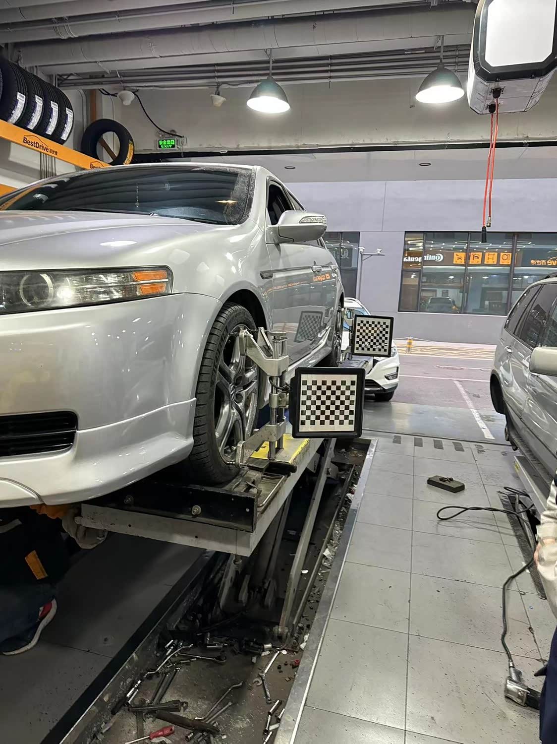 车型讴歌TL,公里数164513,做了四轮定位,本次花费了200元,轿车车轮、减震、转向拉杆等底盘物件的设备之间必定的相对方位,这种相对方位的设备即称为四轮定位。