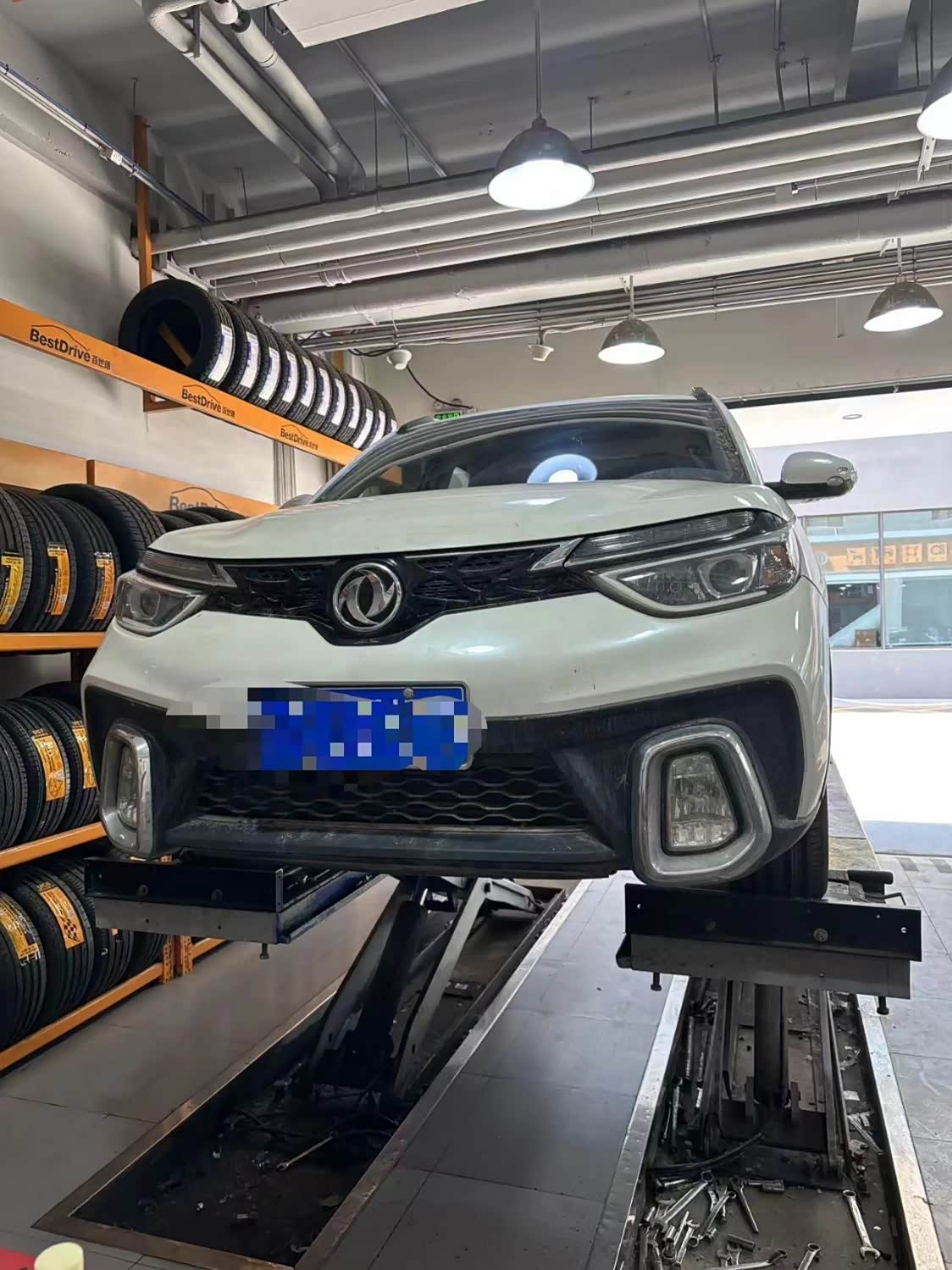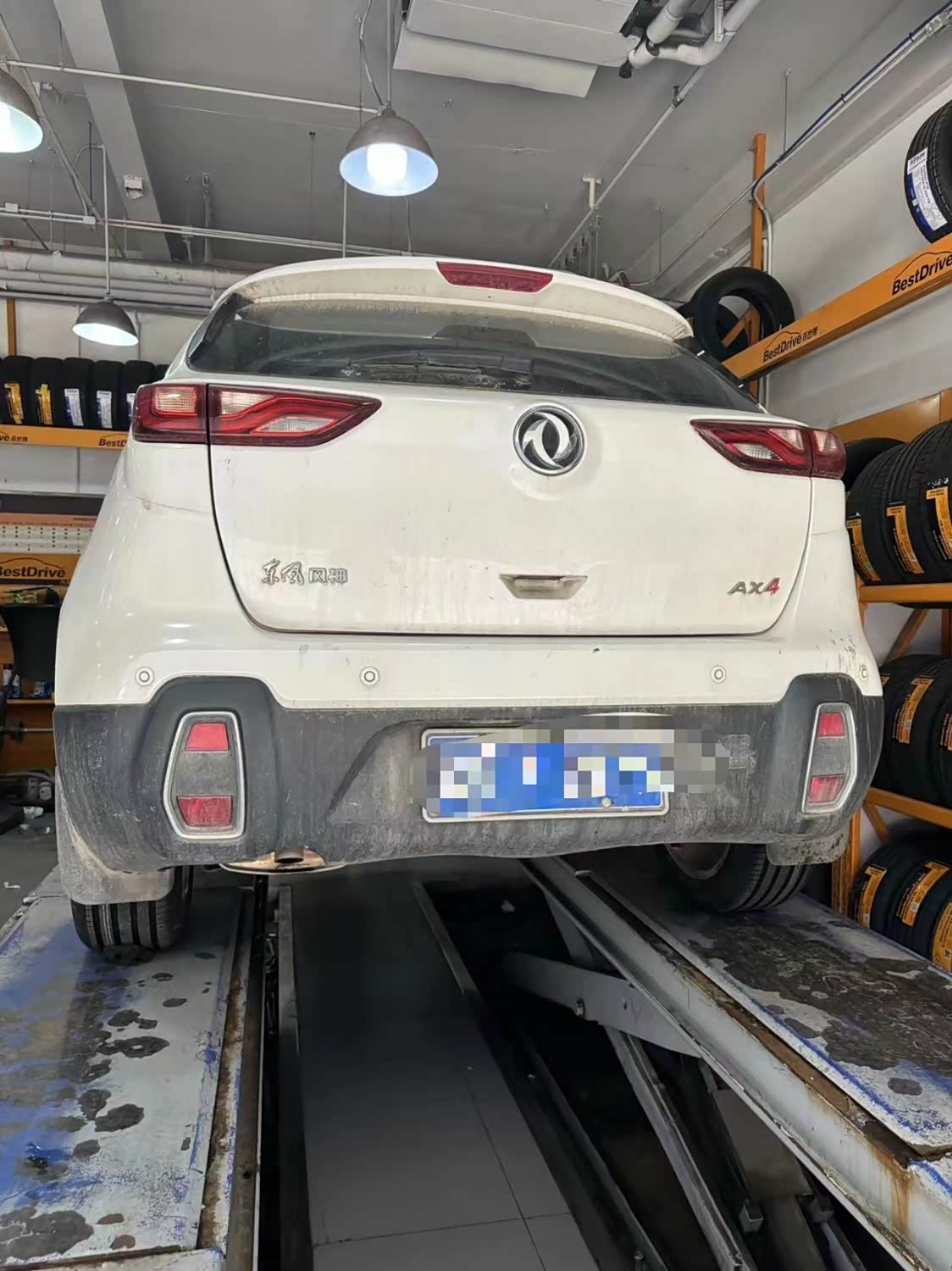 车型东风风神AX4,公里数74441,此次进店做四轮定位,车主说前后轮胎单侧偏磨,这种情况下是需要做四轮定位的,来的也很及时,否则时间久了只能更换轮胎了,此次进店花费300元。