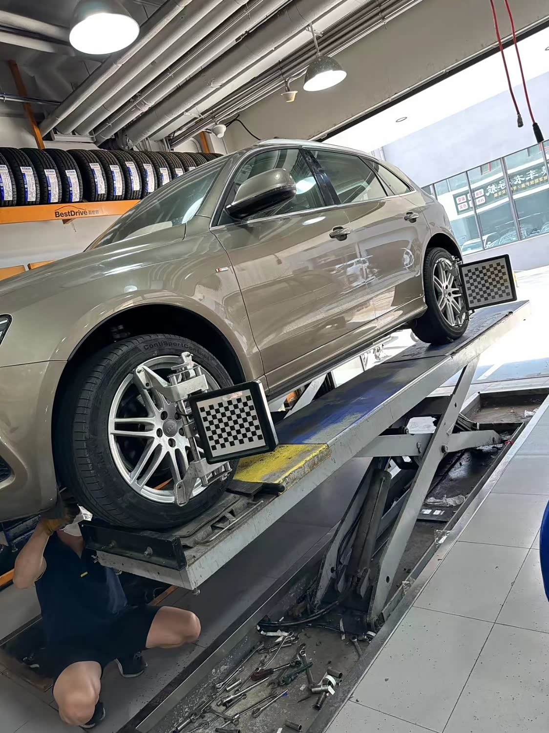 车型奥迪Q5,公里数164889,做四轮定位,四轮定位是车辆保养中非常重要的一个环节,它能够对车辆的悬挂系统进行精准调整,从而提高车辆的行驶性能和安全性。