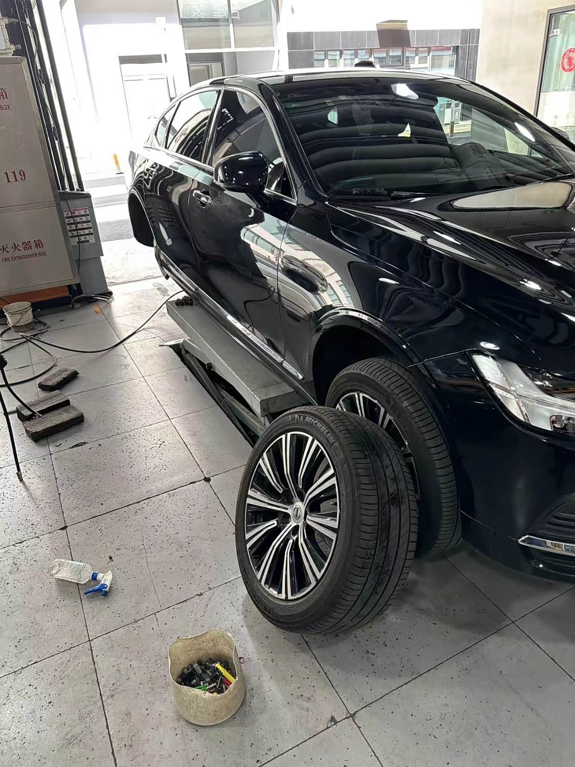 车型沃尔沃S90,新能源汽车,公里数21451,车子在店里做的补胎,需要做个动平衡,如果车辆轮胎需要进行补救修,一般建议在补胎之后再进行轮胎动平衡,以确保轮胎与地面的接触更加平稳。