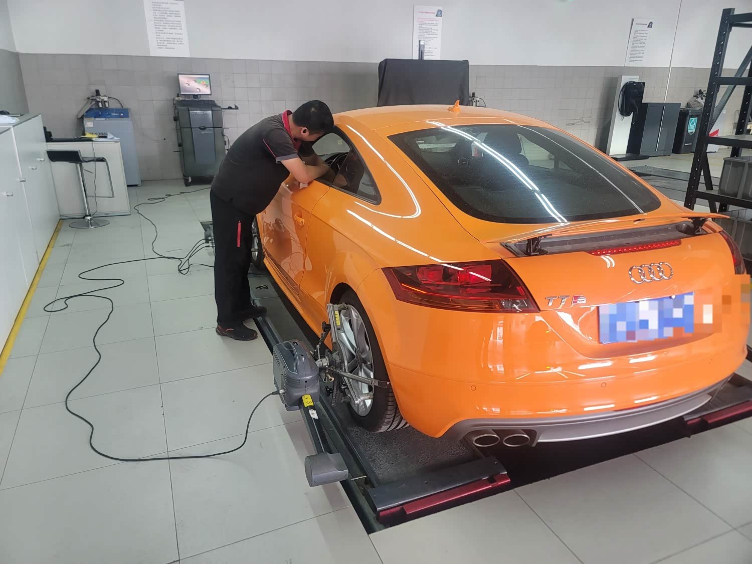 我是北京德奥达奥迪4s店的维修技师,这辆车的客户反应开起来总是向右跑偏,在好多店查了,说是轮胎的问题,经过我们的试车给检测,发现不是轮胎的问题,给做了一个四轮定位的一个方案,检测过程当中发现右前轮的前束角不对,给调整完以后,现在路试一切恢复正常,所以说做定位还是找专业的地方。
