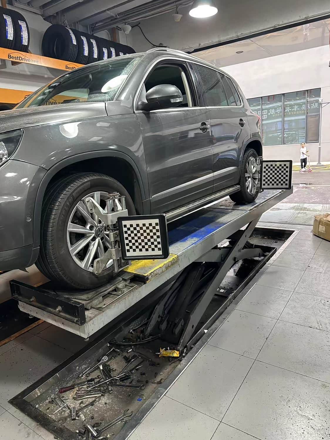 车子公里数154222,到店做四轮定位,四轮定位可以调整转向角度和方向,提高转向的灵活度和准确性,使驾驶更加舒适和自然,今天一共花费300元,这个价格非常划算,不过价格也会因为不同因素而收费标准不一,添加玻璃水50元。