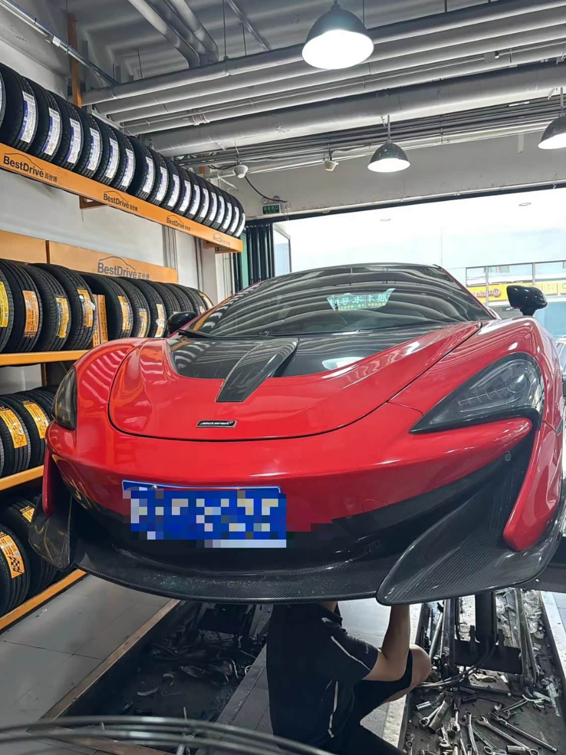 车型迈凯伦570,公里数24963,做四轮定位,并且更换变速箱油,比起车轮动平衡,四轮定位改变的是悬挂系统的倾斜和内倾角度,分为前轮定位和后轮定位:包括前轮外倾角度和前、后轮前束(距离)。