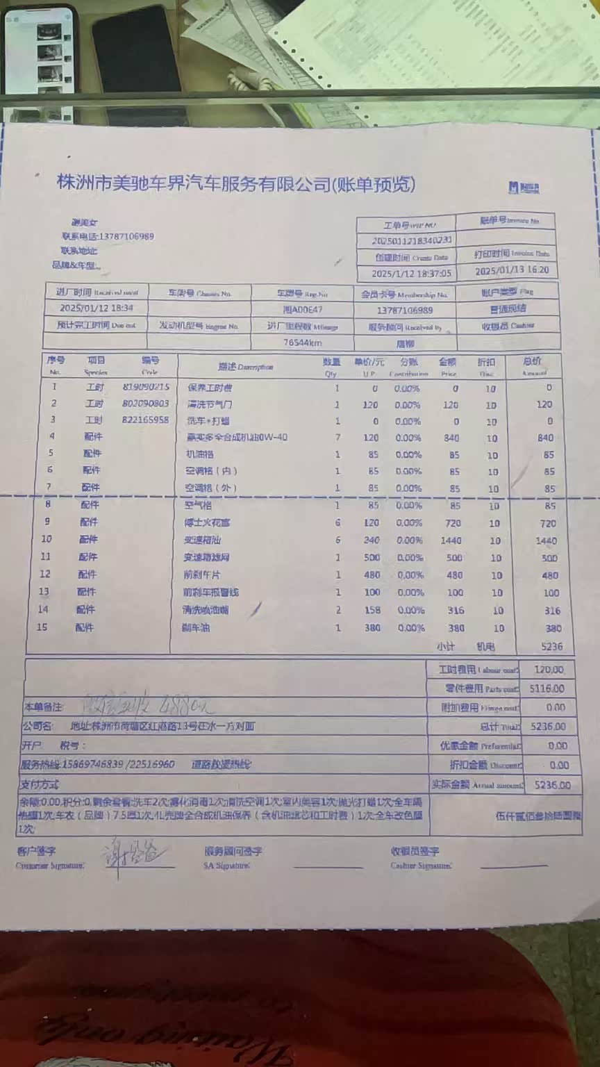 该品牌其他车系保养案例