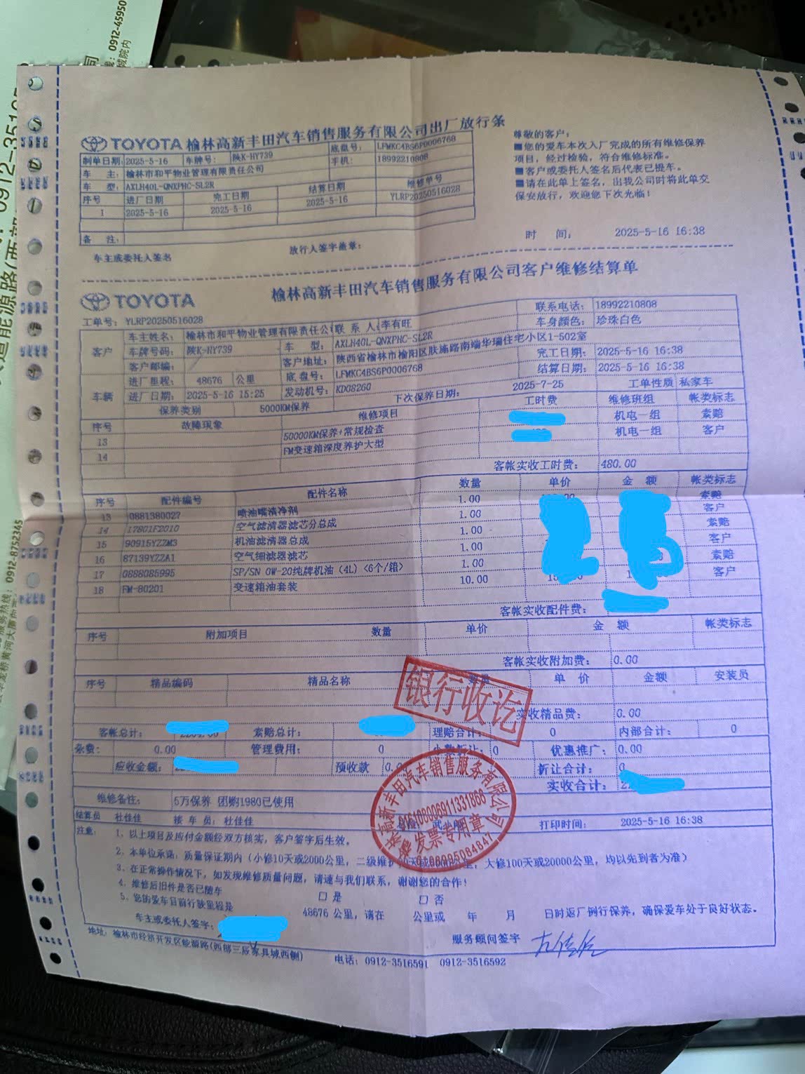 真实票据榆林高新丰田