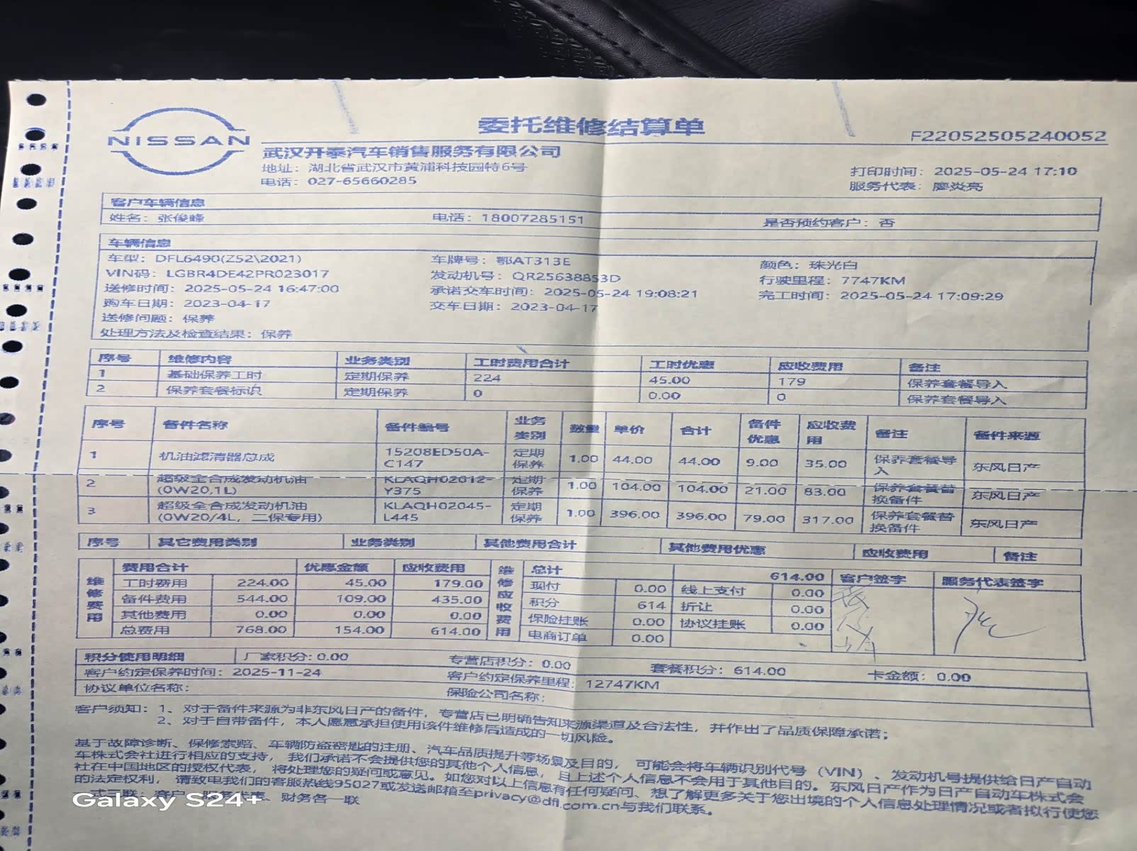 购买的2次保养套餐,汉口开泰日产店在装修,维修车间小了一半,免费洗车服务蛮到位