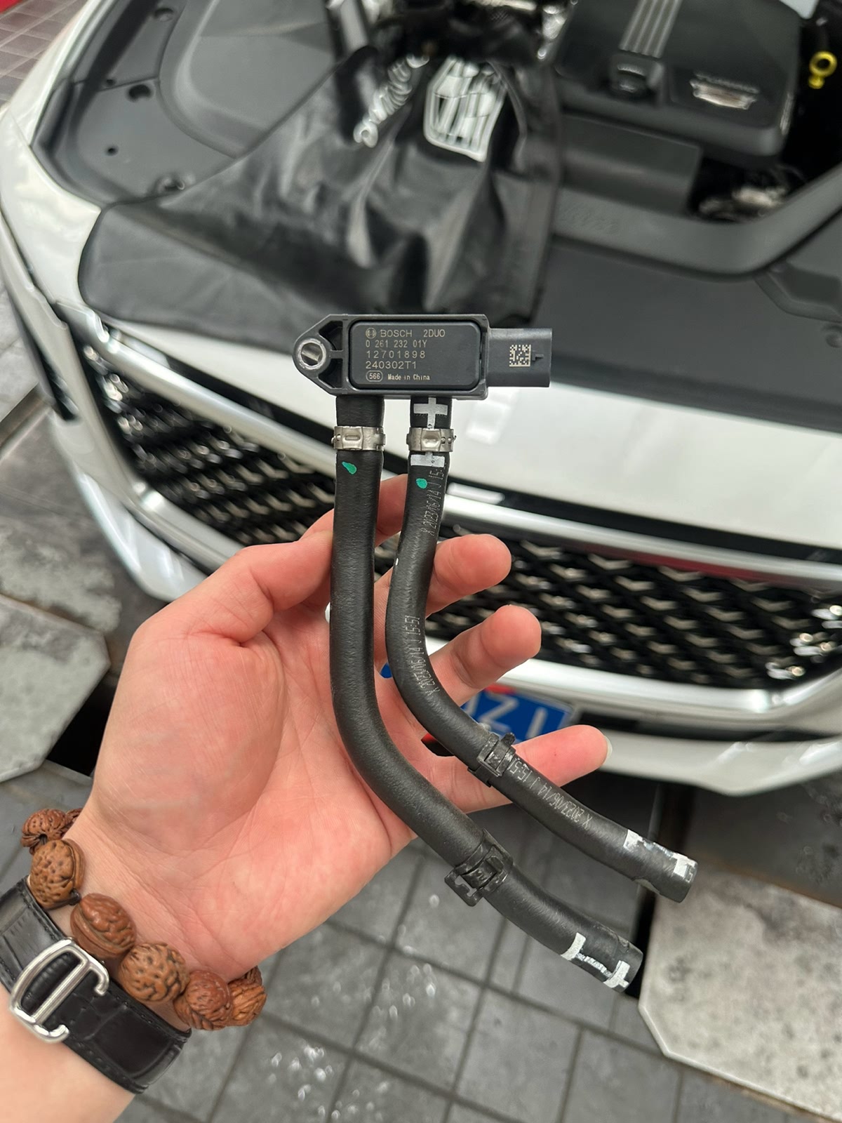 不知不觉公路数来到了9500公里, 仪表显示有故障灯,于是便到店检查, 顺便再做个保养,经过师傅细心检测后发现是发动机排放系统传感器故障需要进行更换。师傅联系售后来单子进行更换新的传感器。出现这个问题行驶中无任何问题,只是油耗会偏高点。 师傅趁着售后开单子时间先给车子做起了保养, 距离上次首保仅仅才开了6000多公里机油还是清澈可见的。这次保养用的机油依旧是银色美浮全合成机油,总体来说还不错吧!