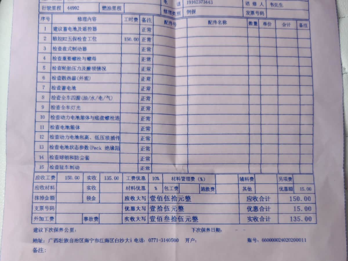 提前在app上预约保养,可享工时费打9折优惠,原价150。另外,原来在猫薄荷4s店保养,问配新钥匙要五六百块钱没配,在这里报价是材料费178、工时费150,相差还是蛮多的,还好猫薄荷倒闭了,不然真被坑了。