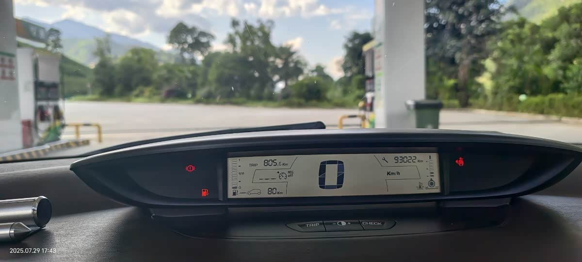 7月27日怒江往保山途中无油,下高速去瓦房加油站100元,7月29日宝山返回福贡途中百花岭加油站加满油,预估可行驶里程900km,那么预估油耗6.67L,行驶105km后油表跳了5L,那么这段行程油耗为4.76L。不可思议。