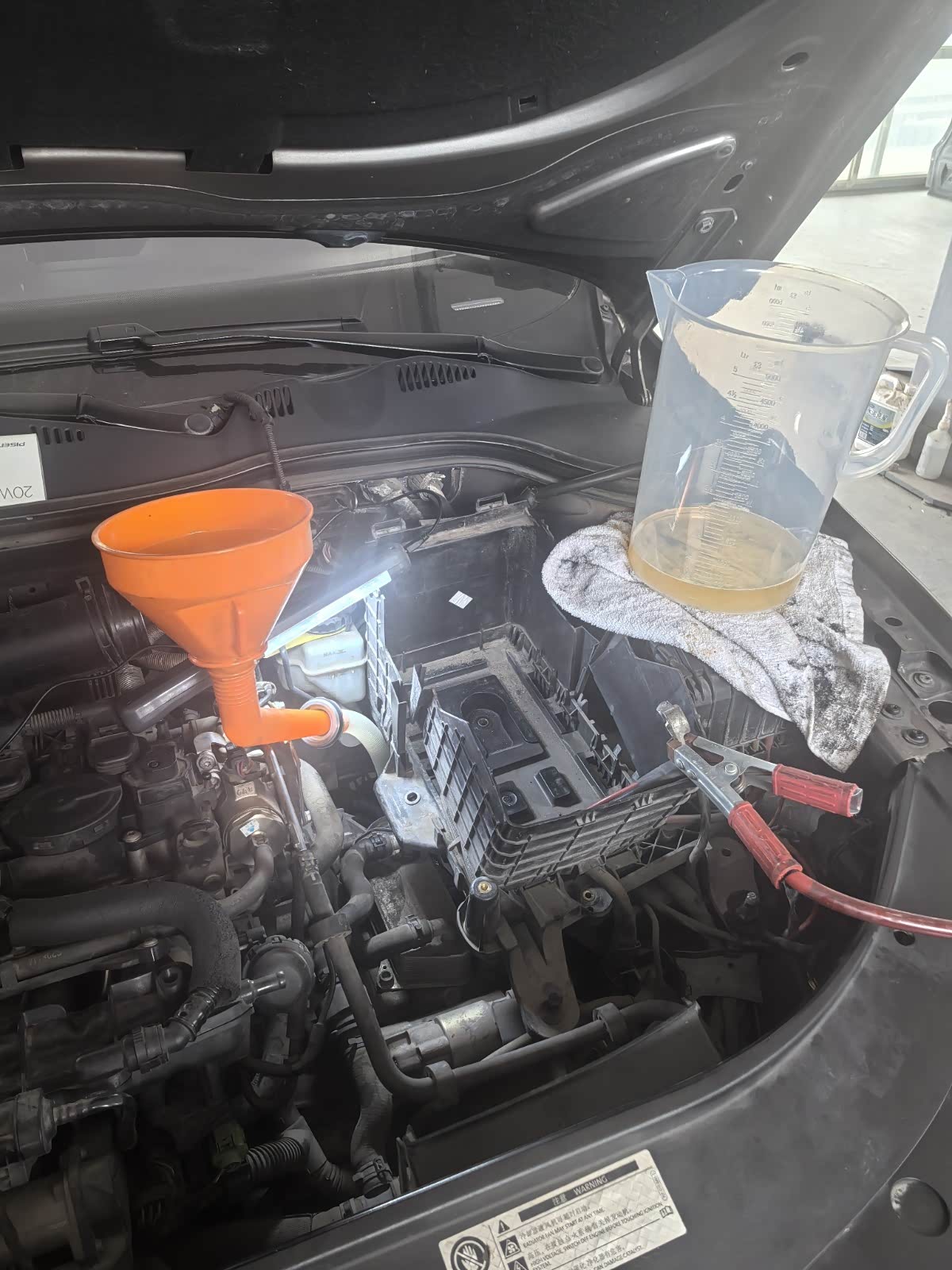 自己动手换的变速箱油,进口福斯FFL-2变速箱油,与车辆出厂用油相同。维修手册上是需要5.5升,买了6升商家实际发货7升。进口原厂变速箱滤芯。换油过程严格按照维修手册要求,全程监控变速箱油温度。放出旧油大概4.4升,加新油5.5升,排出多余油1升。旧油量和新油量大致相当!