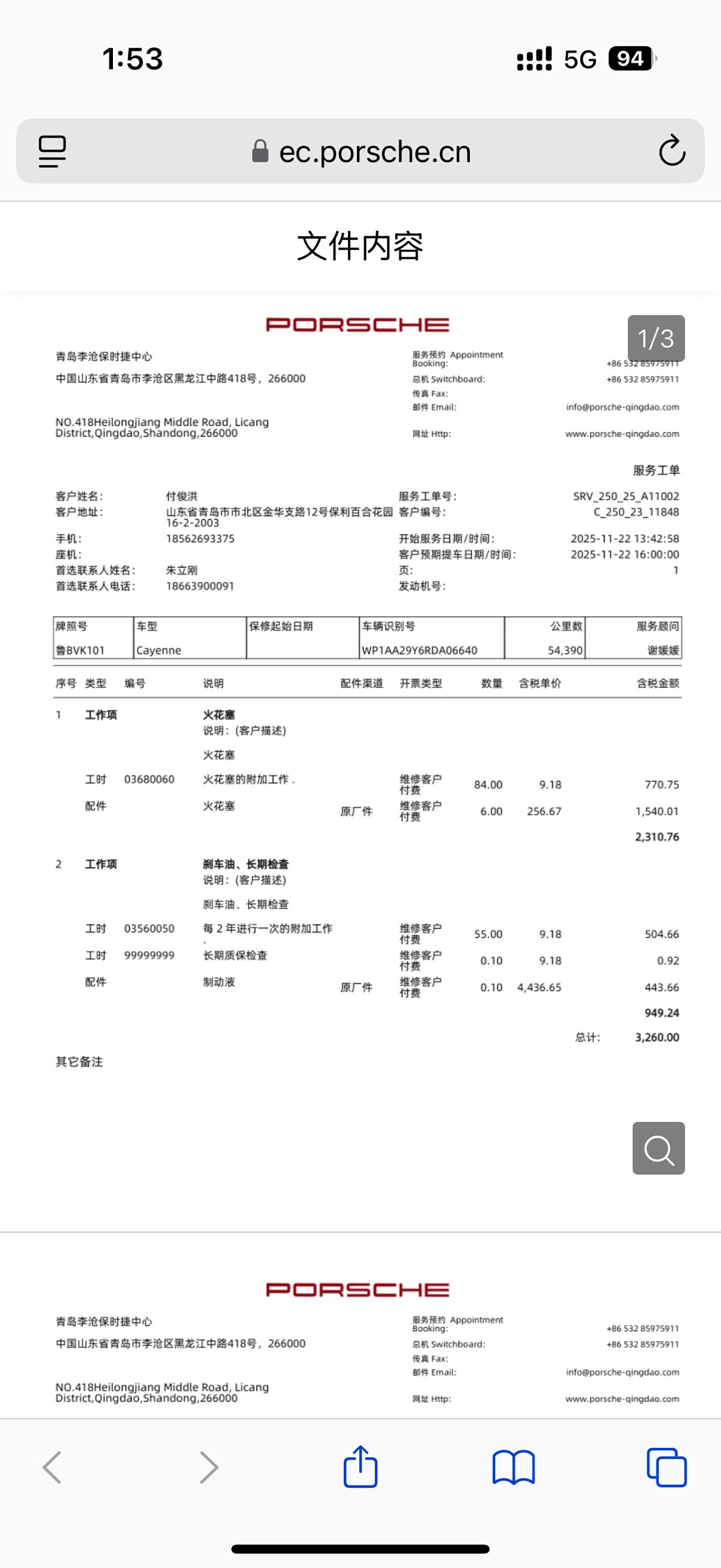 保养项目:更换轮胎、火花塞、空气滤清器、空调滤清器、机油滤清器、发动机机油