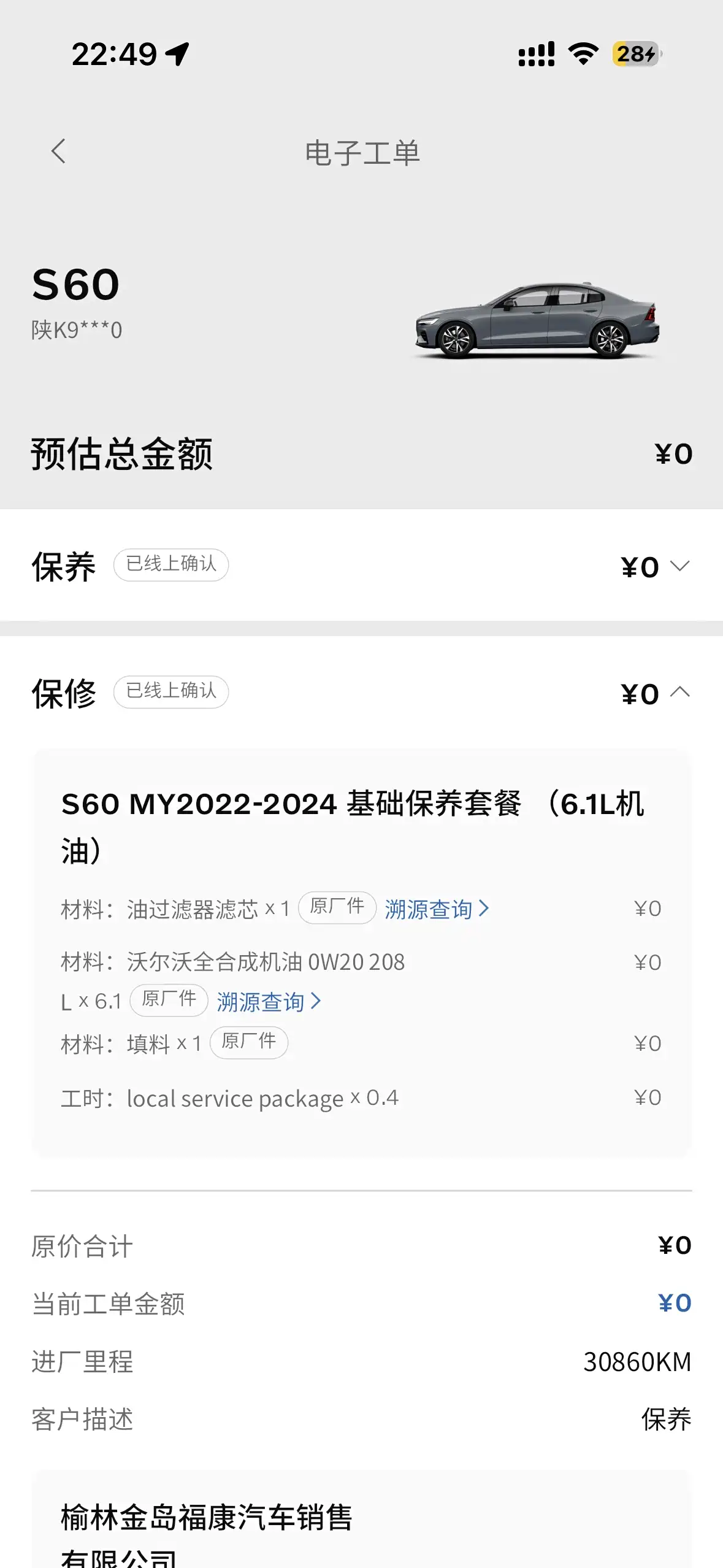 不错!是第四次保养啦虽然才30860km!