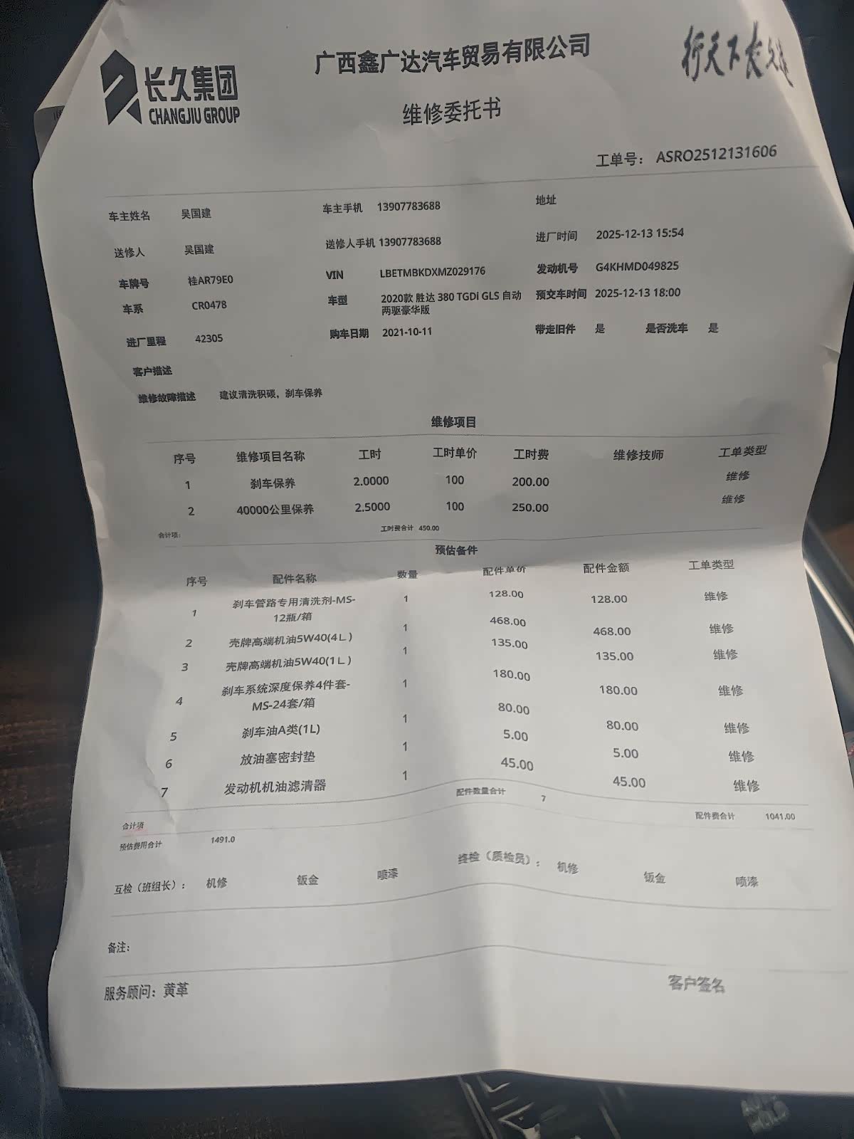 不能去维修车间所以拍了照,不过开起来后感觉刹车比原来的好踩又灵敏好多!
