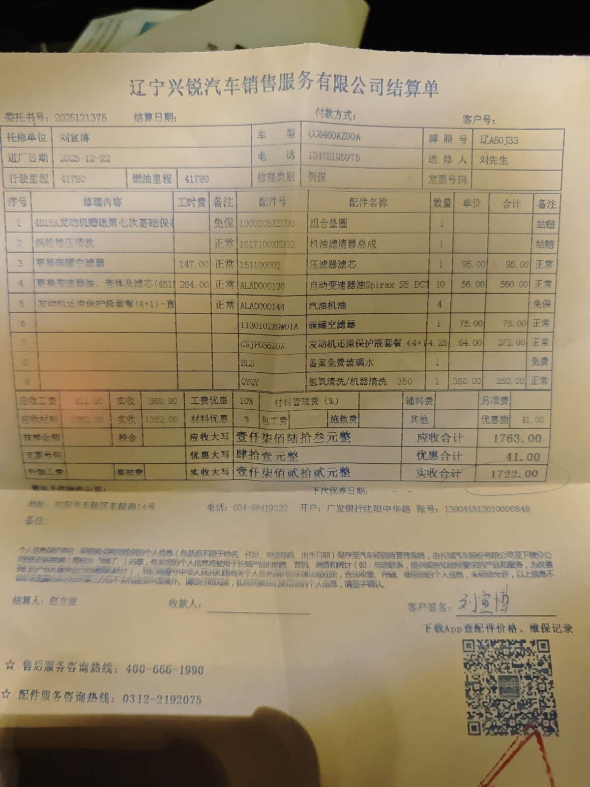 保养项目:燃油滤清器、空气滤清器、空调滤清器、机油滤清器、发动机机油