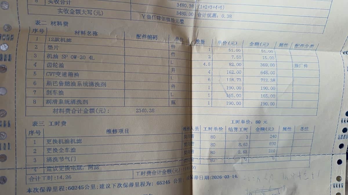 保养花费: