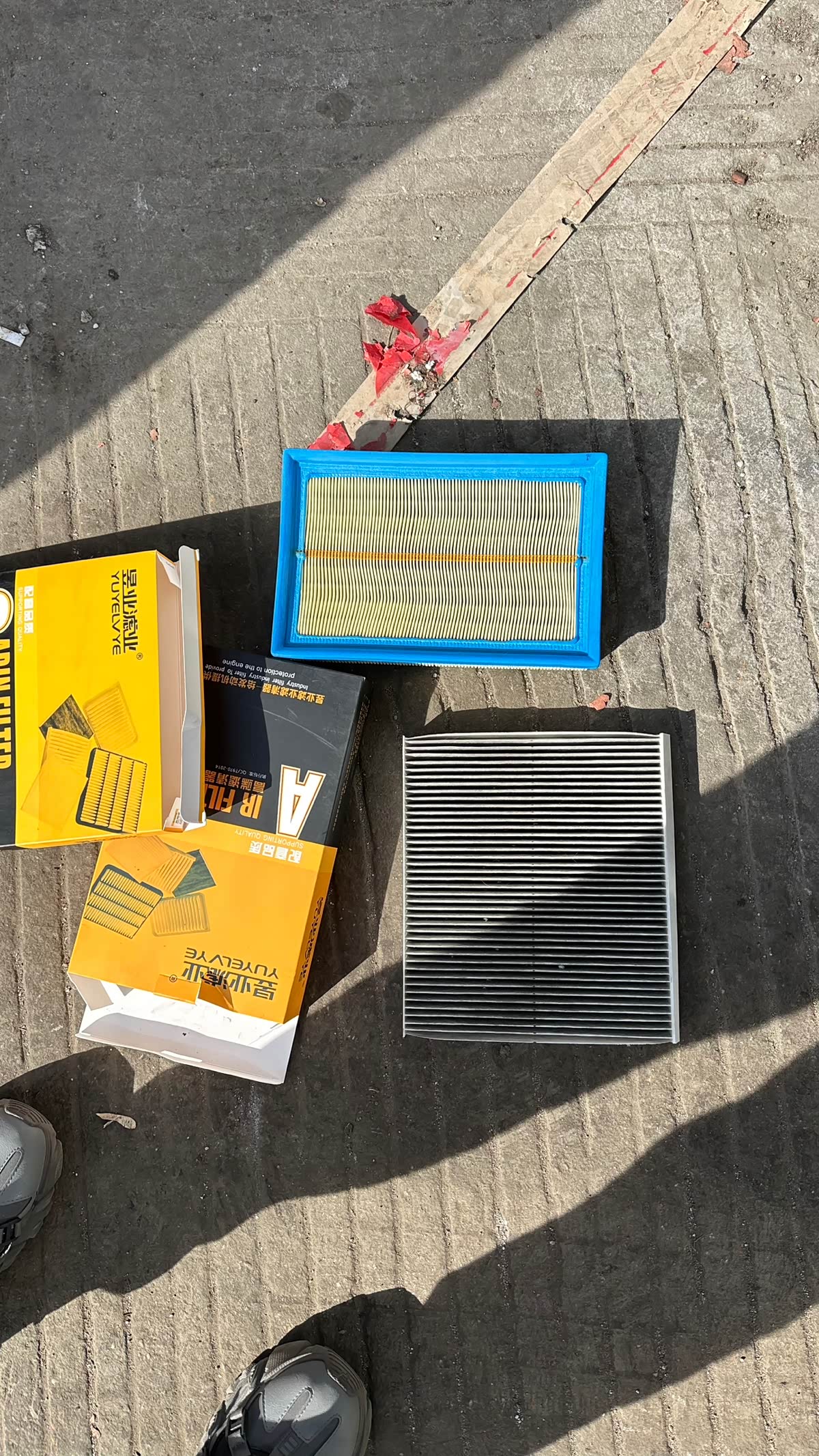 空气滤,空调滤自己在外面换的,花了38块钱,机油机油滤在4S店换的,第二次保养,依然免费
