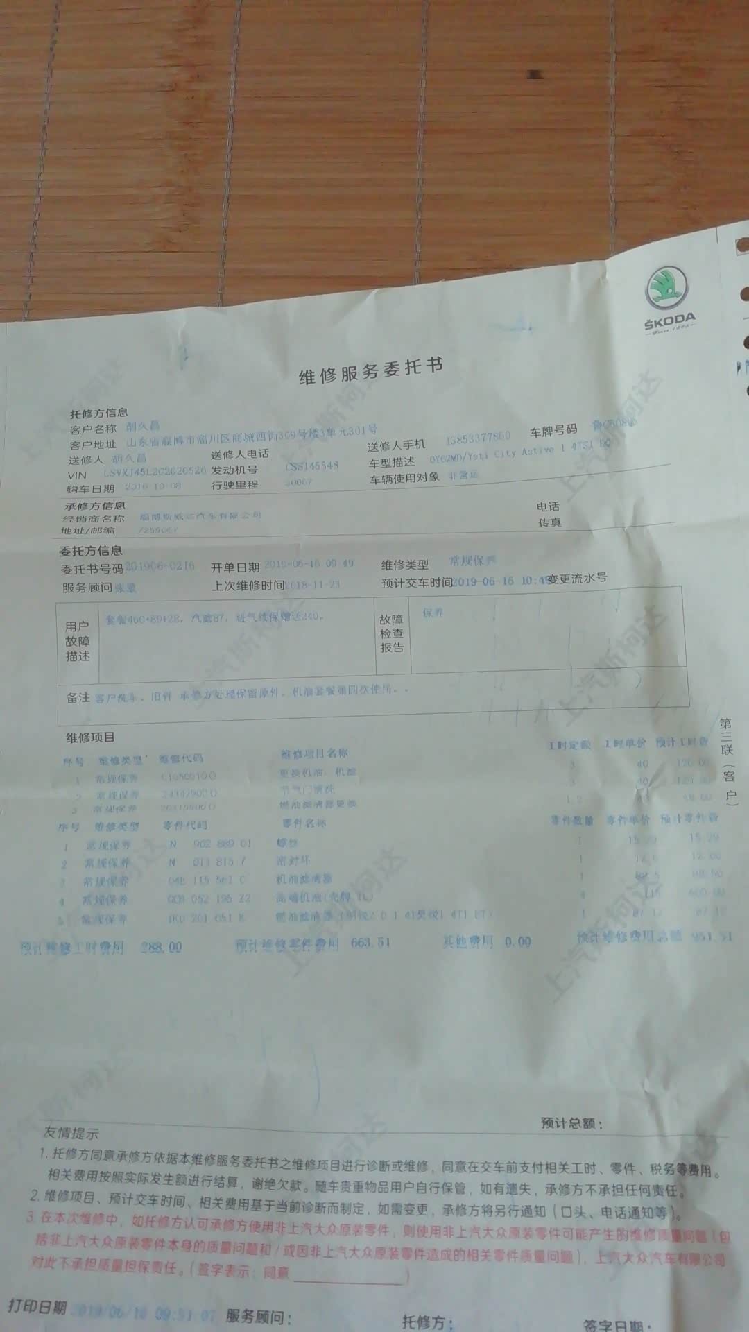 保养项目:空气滤清器、空调滤清器、发动机机油