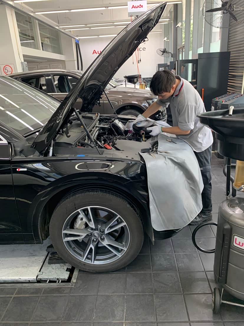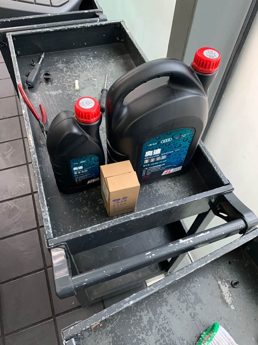 首保免费,用的是奥迪原厂机油,一瓶大的4L+一瓶小的1L,4S店比较仔细,原机油抽的干净,换上全新的机油和机油滤芯,换好后,擦干净,吹干净。再全车检查,轮胎气压调整,电脑设置调整。总的下来,不错,赞一个